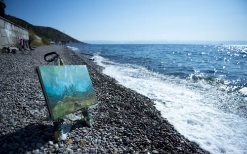 Первым писать картины под водой начал Андре Лабан, соратник Жак-Ива Кусто. Сегодня в мире существует чуть больше дюжины подводных художников. Байкальчанин Юрий Алексеев – один из немногих, кто работает в холодной воде.