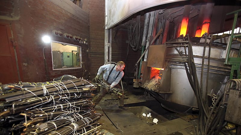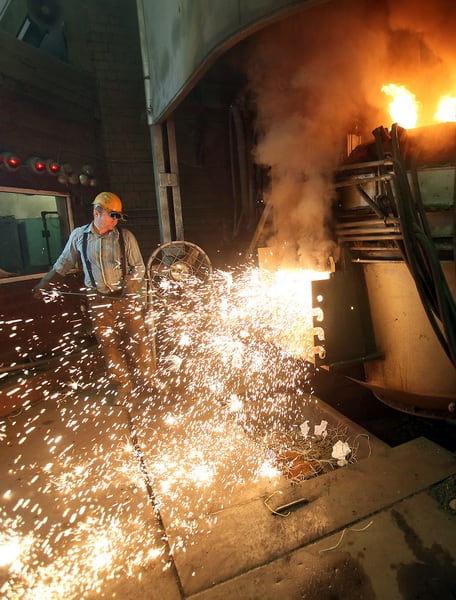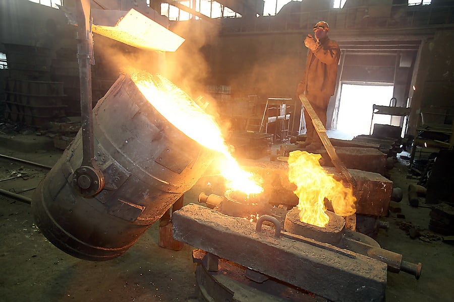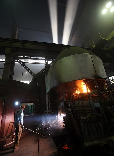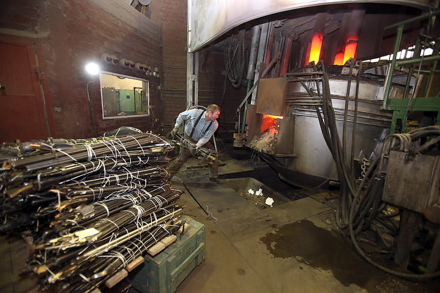 – Оружейная сталь сама по себе не подходит для производства запчастей для драг из-за низкого качества – она слишком мягкая, бромистая, – рассказывает один из сталеваров. – Лишние примеси из неё выгоняются при плавке, а для получения высоколегированной стали мы применяем множество «приправ» – например, для получения этой марки стали берётся восемь добавок: углерод, марганец, сера, молибден, титан и так далее. Это как суп варить.