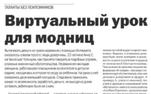Мошенники давно уже не стоят на улице с колпачками и не предлагают прохожим участвовать в лотерее. Компьютер и Интернет дают новым котам базилио и лисам алисам более совершенные инструменты сравнительно честного отъёма денег у населения. Светлане срочно нужны были деньги. Поэтому она, образованный человек, разрешила себе подумать, что может получить кредитную карту, пользование которой будет стоить 17% годовых. Это неправдоподобно низкая ставка даже для обычных потребительских кредитов. Женщина связалась с редакцией и попросила рассказать о своей истории – вдруг кому-то её опыт окажется полезным. Но в полицию не пошла. Думает, это бессмысленно, да и стыдно лишний раз признаваться в собственной глупости.