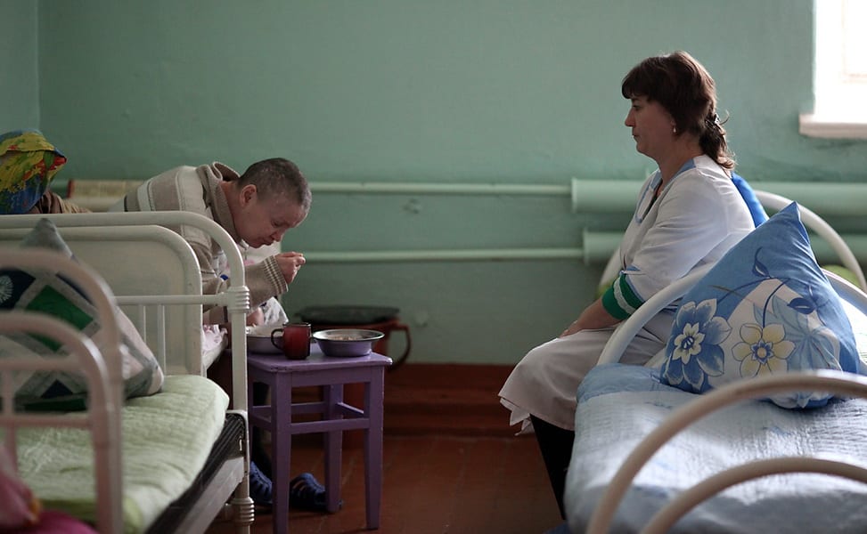 Женщины-пациентки, узнав о причине визита, начинают стенать: «Не выгоняйте нас из дома!» Кажется, они тоже не думают, что их права человека в чём-то ущемлены. «Сокращения» уже коснулись их напрямую – из 70 коек осталось 38.