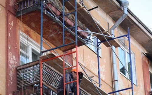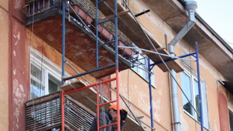 Кроме укрепления торца, в здании проводятся работы по ремонту балконов