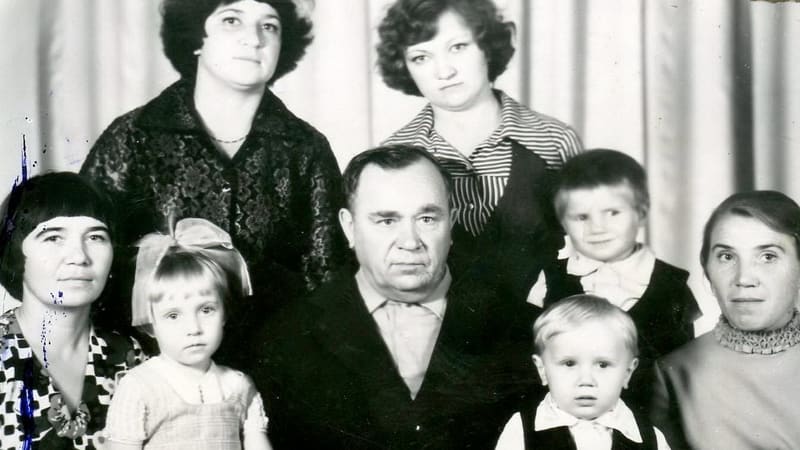 – Дед, ещё один дед, бабушки, мама, – обращает Лидия Михайловна моё внимание на миловидную женщину с младенцем на руках. – Это мы в одинаковых платьях, – кивает она на глазастых девчушек со снимка, – а малыш, что на руках, – Наталья. К сожалению, мама рано ушла из жизни, погибла на дороге. Мы все пережили её по возрасту. А вот отец, смотрите, какой у нас был!