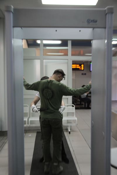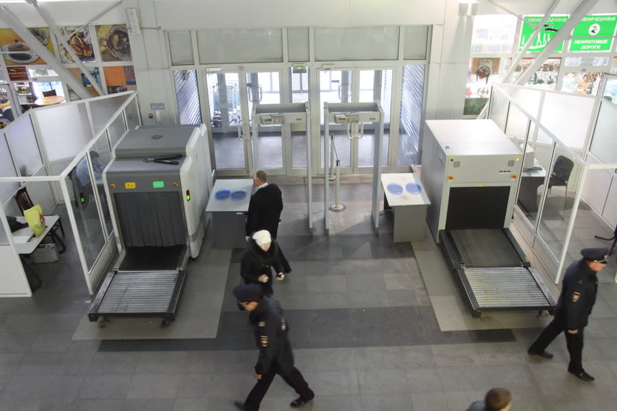 Но это скорее исключение из правил. Первое правило для сотрудников службы безопасности гласит: «Ничего не трогать руками». Это касается и людей, и предметов. Например, перед пунктом досмотра стоит «парта», пост сотрудников полиции. Там человека проверяют по полицейской базе данных – например, на предмет нахождения в федеральном розыске.
