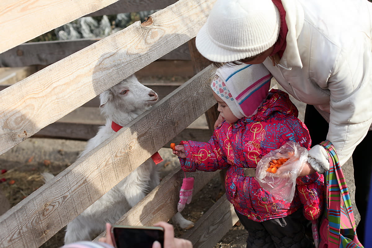 Иркутяне прогулялись по лесным дорожкам и экологической тропе, осенне-зимнему дендрарию и спящим коллекциям растений открытого грунта. Особый восторг у взрослых и детей вызвало прямое общение с животными контактного зоопарка – енотом, кроликами, белками, осликом, яком, козами, овцами… Всех животных можно было потрогать и покормить морковкой, яблоками, орехами, семечками.