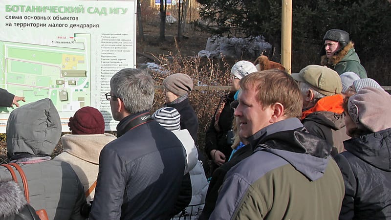 Экскурсии по дендрарию, двум оранжереям тропических и субтропических растений, контактному зоопарку провели руководители и ведущие сотрудники ботанического сада ИГУ Виктор Кузеванов, Светлана Сизых, Елена Хмелькова, Евгений Ермаков и другие. Они рассказали гостям познавательные и увлекательные истории о растениях и животных, показали этнический бурятский уголок с юртой, водоём, японский сад камней с растениями из Хиросимы.