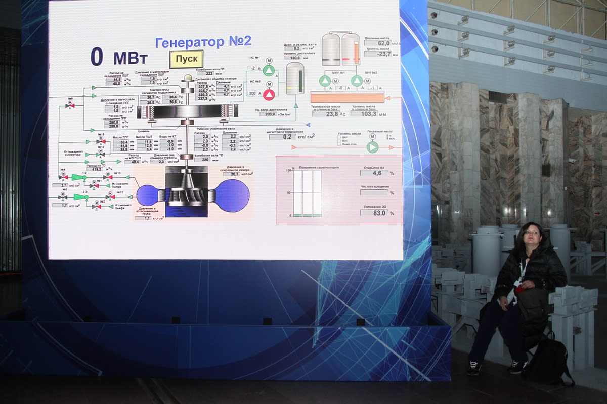 Работники Саяно-Шушенской ГЭС и журналисты, находившиеся в машзале, уже давно в ожидании поглядывали на экран, где была изображена схема последнего гидроагрегата. Вот загорелась надпись «пуск», и за считанные секунды показатель мощности обновился с нуля до 640 МВт. Теперь установленная мощность станции достигла проектного значения – 6400 МВт.