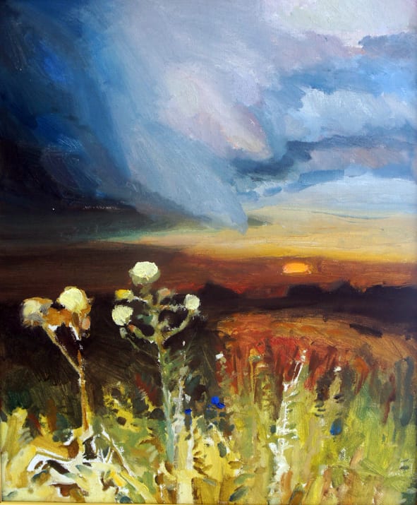 Самый же главный акцент, по замыслу художника, сделан на живописи – жанре, в котором Александр Шипицын раскрылся в новой для нас ипостаси тонкого и вдумчивого колориста. Мазок его кисти буквально завораживает, удивляя своей мягкостью и гибкостью, спокойствием и кажущейся безмятежностью… Невольно вспоминаются цветные офорты юбиляра, в большинстве из которых прочитываются изысканность и гармония благодаря плавной извилистой линии, композиционному решению, звучанию красок. Именно эти качества лучших офортов, на мой взгляд, привнесены и в его живопись, придавая работам, особенно байкальским пейзажам, особую привлекательность и некий шарм.