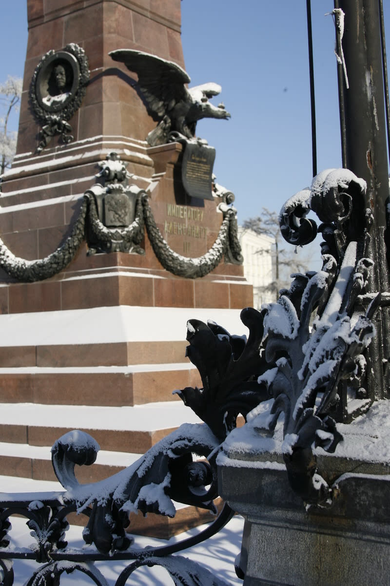То же самое можно сказать и о памятнике Александру III, стоящему на набережной Ангары в Иркутске. Это один из самых семантически богатых имперских памятников России, он лаконичнее, чем монумент Екатерине II в Санкт-Петербурге или памятник «Тысячелетие России» в Великом Новгороде. Иркутский Александр III насыщен имперскими знаками: двуглавый орёл, который принёс указ о строительстве Великого сибирского пути, изображения сибирских гербов, горельефы Ермака, Муравьёва-Амурского и Сперанского.