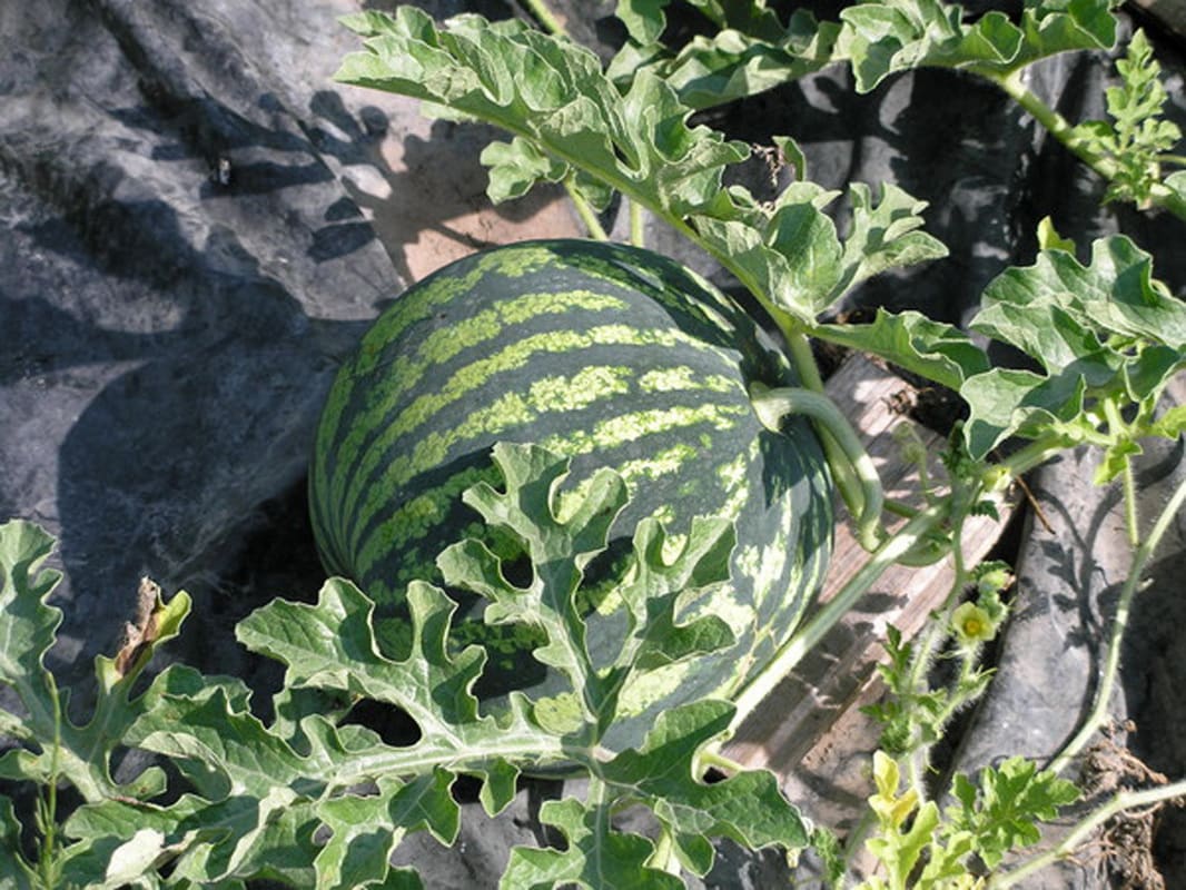 Если нет теплицы, эти арбузы можно вырастить и в открытом грунте. Гряды готовятся шириной 70 см и высотой 15 см, также укрываются плёнкой (дорожки тоже прикрываются). Но садить семена необходимо на расстоянии 70 см. Поднятая грядка под плёнкой быстрее прогревается, выравнивает суточные перепады температуры. Создаются хорошие условия для роста рассады, и в дальнейшем растения практически не требуют никакого ухода. Полив требуется лишь в засушливое лето один раз в неделю.