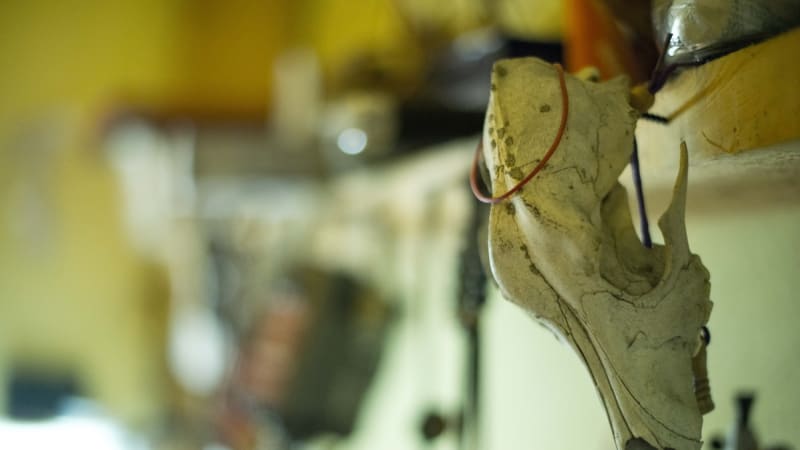 – Ну а самый главный мой инструмент – это «буратино», – улыбается Александр и демонстрирует крепкое высокое полено со следами былой красоты и многочисленных ударов. – Придать форму, например, этому черепу возможно только на «буратино».
