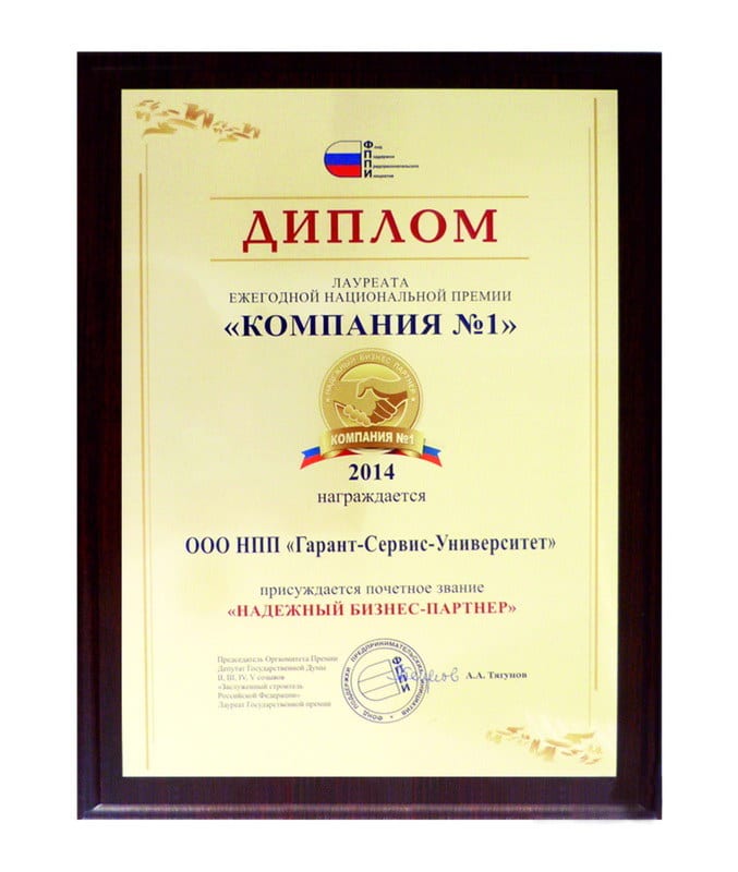 Компания «Гарант» стала победителем ежегодной национальной премии «Компания № 1» с присуждением звания «Надёжный бизнес-партнёр».