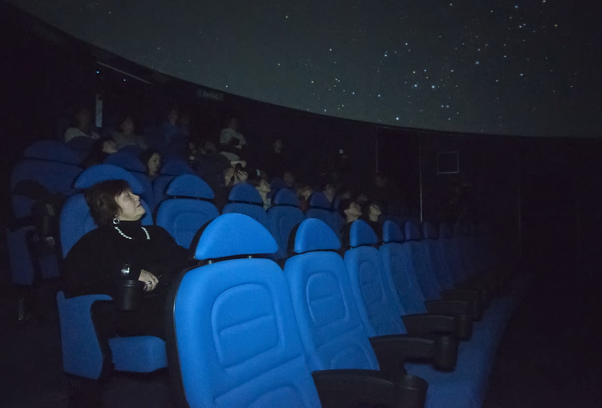 Во время первой лекции в новом планетарии зрителям показали, как можно «симулировать» открытие одиночной звёзды Kepler-11 в созвездии Лебедя и семейства планет возле неё при помощи космического спутника, телескопа Kepler (открытие в реальном времени опубликовано в 2011 году). Возможности у симулятора довольно большие, к примеру, можно показать орбиты планет различными цветными линиями, траектории полёта комет. Симулятор позволяет «отрисовать» поверхности воображаемых планет, окрестности звёзд, чёрных дыр и других космических объектов. Лекторам советского времени приходилось составлять лекции только на основе работы звёздной машины, проекторов и диапозитивов. Диапозитив, как бы красочен он ни был, всегда даёт одно и то же изображение. В старом планетарии бывали случаи, когда за поверхность Венеры лектор «выдавал» слайд из набора о древнем прошлом Земли. Симулятор же позволяет современным лекторам почувствовать себя создателями «иных миров». «А вот это Марс, – говорит лектор. – И здесь поверхность более-менее адекватно воспроизведена по снимкам, которые сделаны как с борта космических аппаратов со спутников Марса, так и с аппаратов, которые побывали на его поверхности. Фактуру поверхности Марса можно нарисовать и по-другому, показать огромные вулканы, глубокие ущелья, вершины, кратеры, следы древних метеоритных бомбардировок. А вот это Солнце, и изображения солнечных пятен, полученные совсем недавно с космической обсерватории НАСА, SDO (Solar Dynamics Observatory)». В конце путешествия мы видим Землю такой, какой видят её космонавты на МКС, причём программа позволяет «отрисовать», как говорят специалисты, и показать всё что угодно – рельефы, горы. Степень детализации картинок очень высокая. На куполе – знакомые очертания. «Это Ольхон, судя по всему?» – спрашивает кто-то. Сквозь дымку атмосферы сверху просматривается Байкал. Лекция завершается аплодисментами.