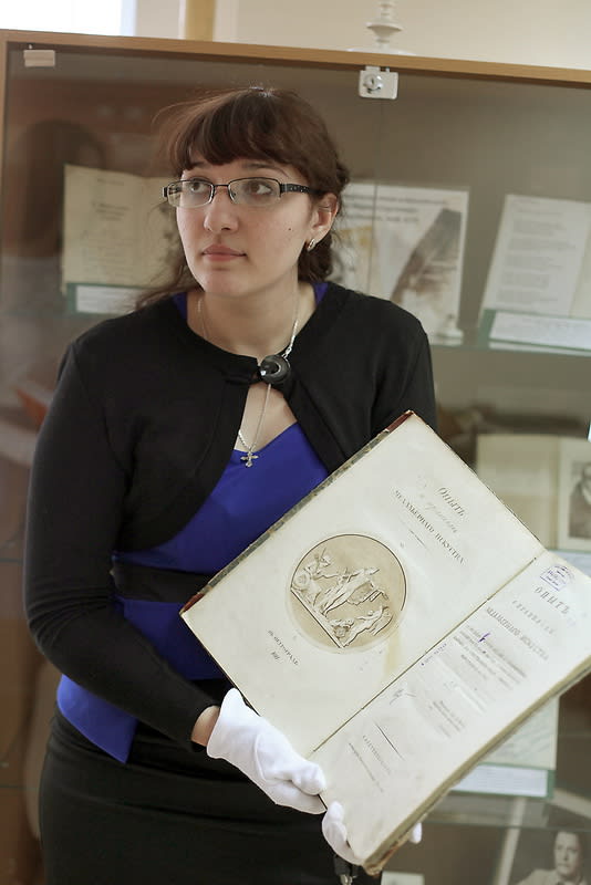 Около сотни человек, включая совсем юных читателей и пенсионеров, во вторник любовались этим изданием. Выставлено оно было только один день. С раритетом ознакомилась даже группа кадетов. Отдел историко-культурного наследия – одна из «путевых точек» в экскурсии по Иркутской областной государственной универсальной научной библиотеке им. И.И. Молчанова-Сибирского. Одна из самых интересных «точек», но на этот раз и раритет действительно был особенным – его показывали только один день – 9 декабря, в День героев Отечества. Книга «Опыт о правилах медальерного искусства» была издана в 1817 году в типографии Императорского театра.