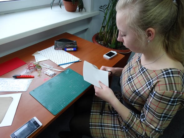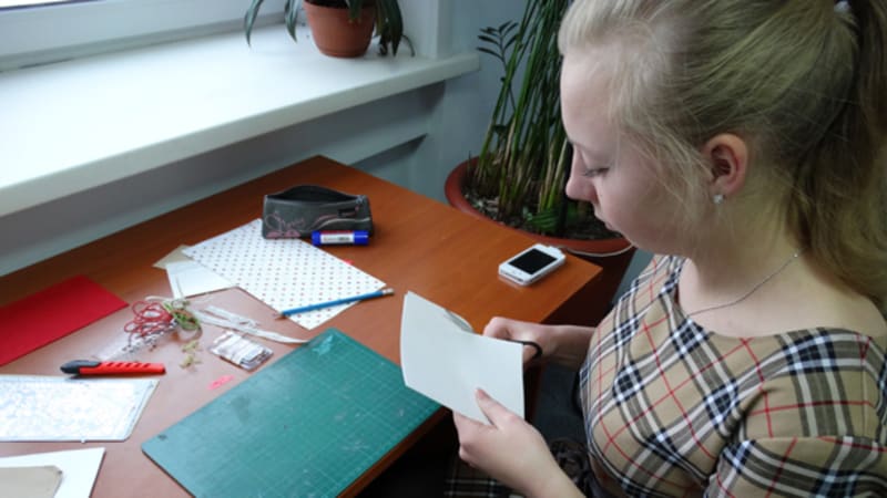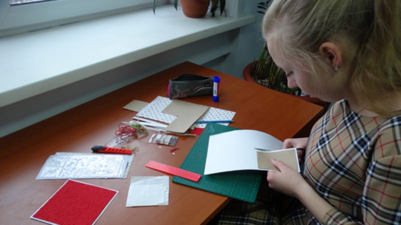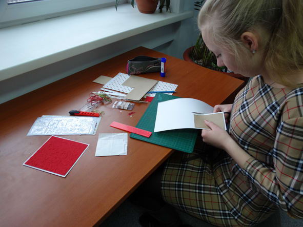 Открытка – прекрасное дополнение к новогоднему подарку. А открытка, которая сделана своими руками – знак особого отношения к тому, кому она предназначена. Анна Мельникова вот уже более двух лет занимается изготовлением открыток, для неё это не только хобби и большое удовольствие, но и прибавка к стипендии. Для новогодних открыток в ход идут всевозможные материалы: салфетки, цветная бумага, картон, бусины, пайетки, ленты, кружева и многое другое.