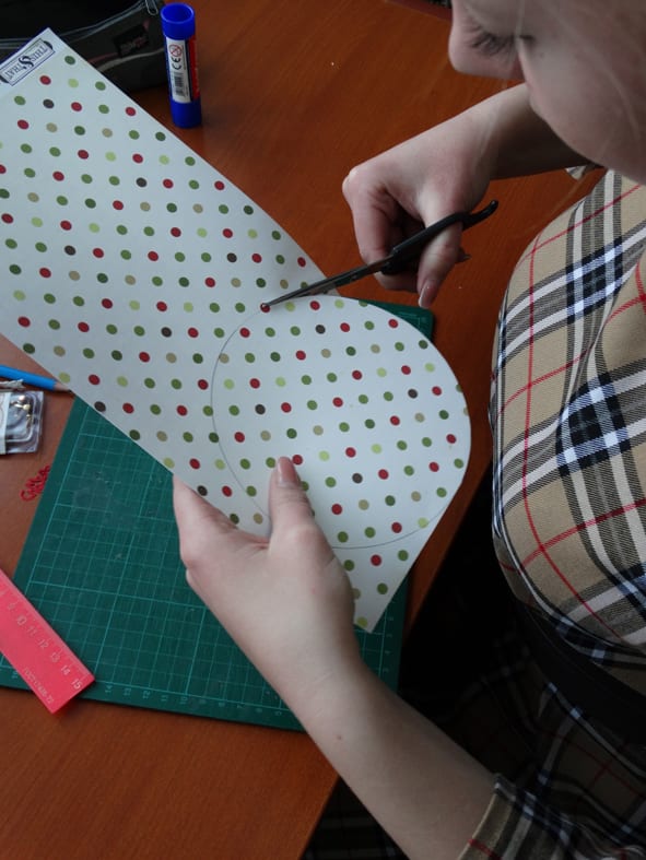5. На листе разноцветной бумаги рисуем круг диаметром 15 см и вырезаем.