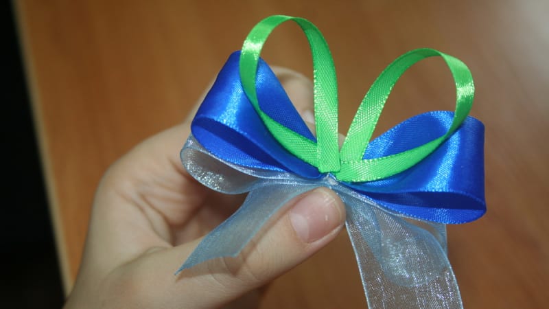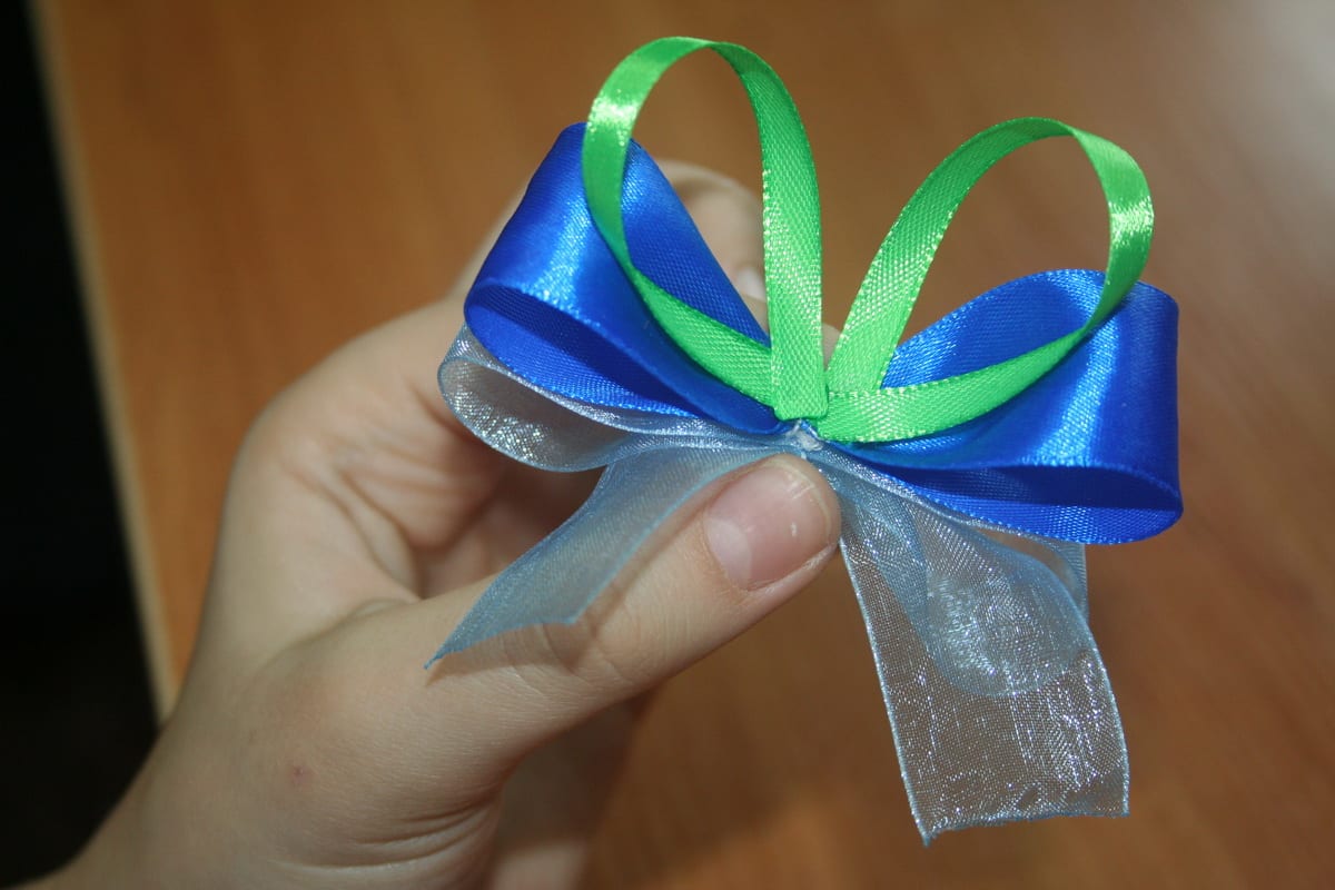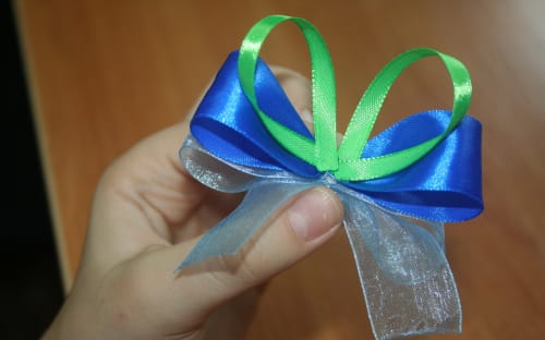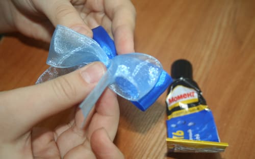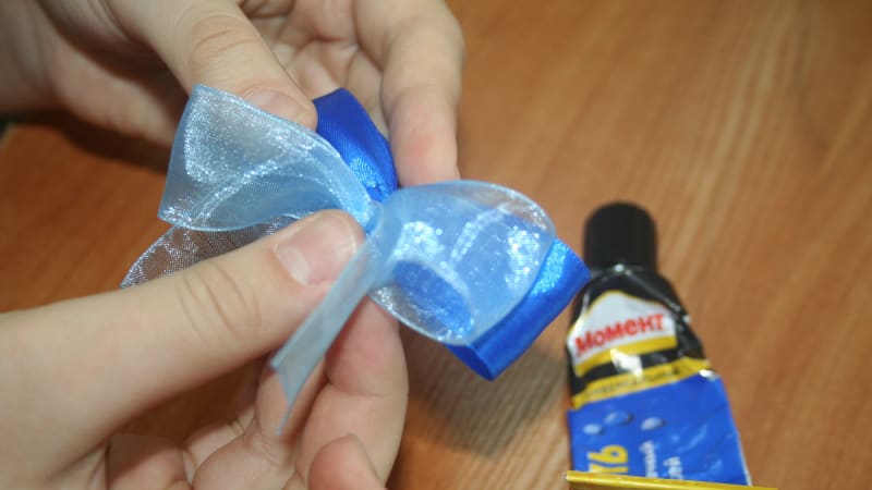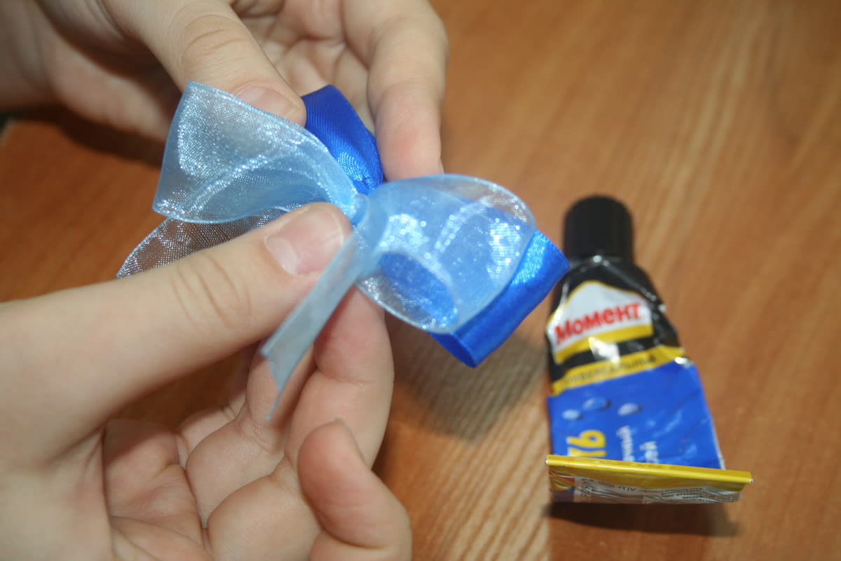 5. Скрепить получившиеся бантики между собой клеем.