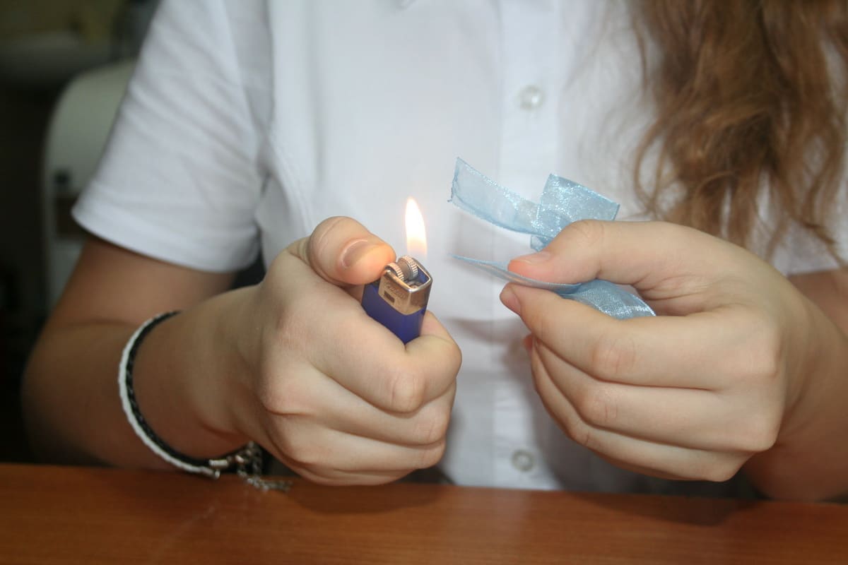 Не забываем опаливать края ленточек, если у вас сыпучая ткань.