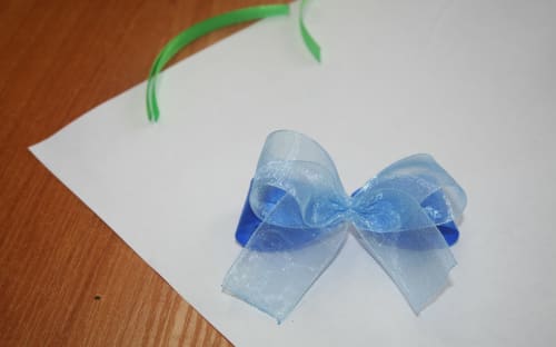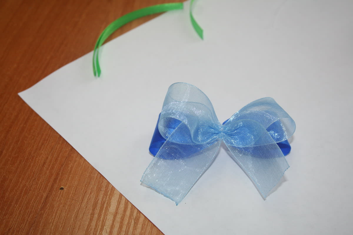 4. Со второй цветной лентой проделать то же самое, что и с первой, только концы её согнуть крест-накрест.