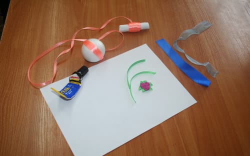 – цветные ленточки (в нашем случае 2 отрезка 2,5 х 15 см и 3 отрезка 0,5 х 10 см)