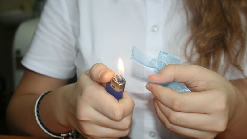 2. Получившийся хвостик опалить зажигалкой и сделать петельку.