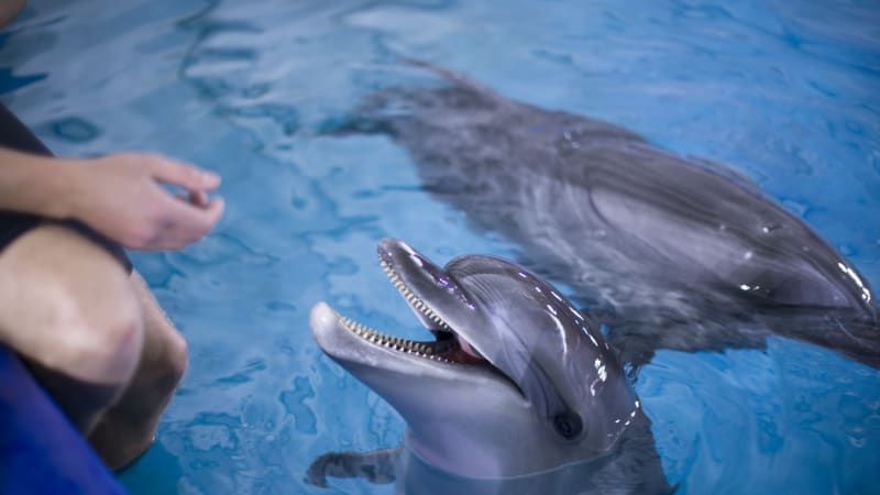 – Люди разные бывают. Некоторым кажется, что к животным относятся жестоко. Но на самом деле им хорошо не на воле или в неволе, а там, где их любят и где им комфортно. У нас в штате есть специалисты по водоподготовке, ветеринары, и мы в каждом городе находимся под очень жёстким контролем по питанию и содержанию животных. А как их любят тренеры и как сами дельфины относятся к сотрудникам дельфинария, вы можете увидеть на выступлении…