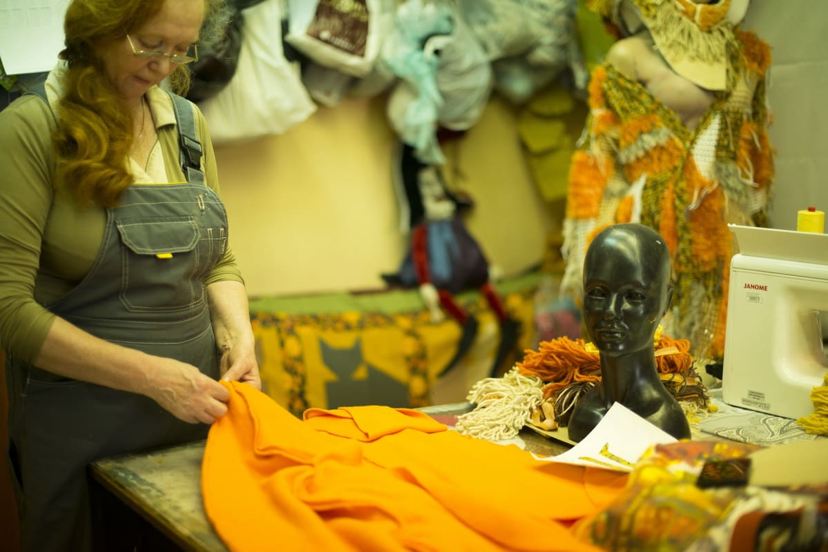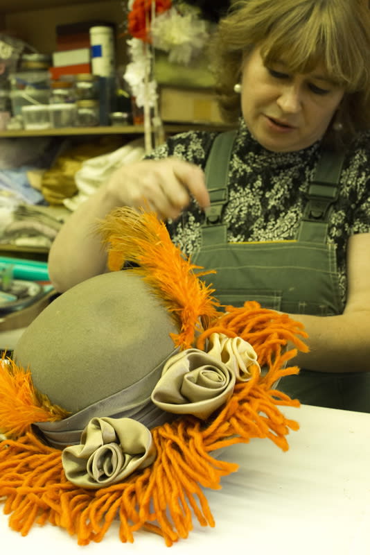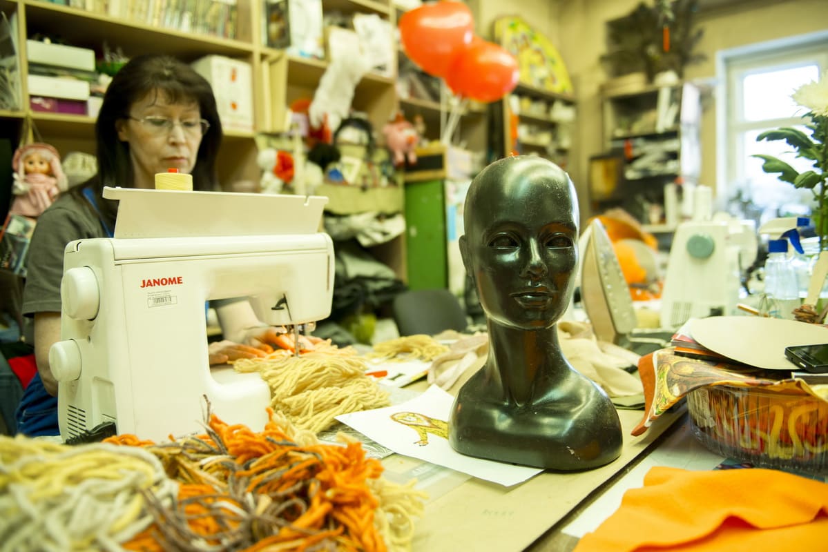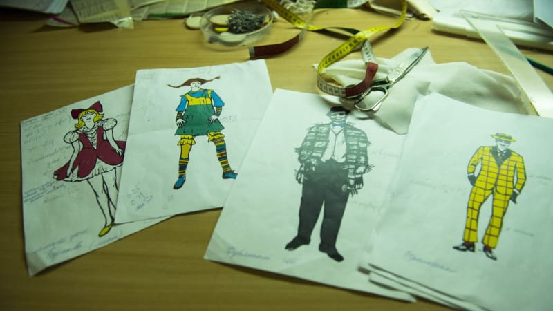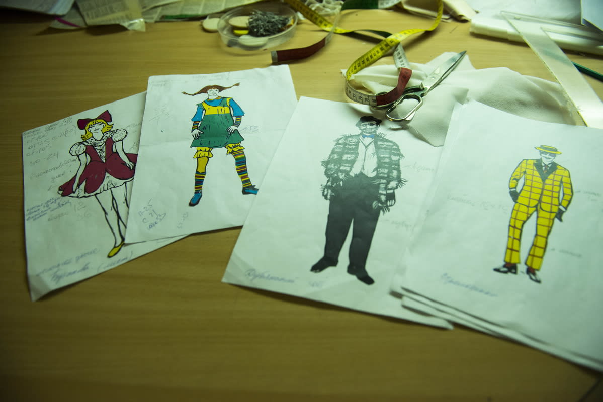 Ну а бутафоры уже прикидывают, садятся и пишут, какие материалы нужны для работы, заявка отдаётся в отдел снабжения. А потом распределяется сама работа – что мальчики будут делать, а что девочки. По ходу дела что-то может меняться – процесс это живой, временами капризный, бывает, что и материалы диктуют своё настроение и немного меняют задачи. В пошивочном цехе работа складывается по такому же принципу: заведующая цехом Ирина Рудовская смотрит эскизы и делает заявку на метраж – сколько ниток, пуговиц, крючков, петель, тканей необходимо. Каждый костюм она кроит сама, а портнихи отшивают. Работа в этом цехе тоже сейчас кипит – костюмы шьются и для новогодней сказки, и для музыкального проекта «Рождественские встречи».