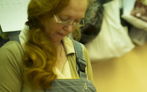 – Материалы сегодня такие, что одна радость работать – по сравнению с тем, что раньше было. Сейчас хорошее качество клеёв, тканей, – продолжает Елена Киселёва. – Мы из папье-маше редко что делаем, а в советское время этот материал часто использовался. Сейчас же маски в основном мастерим из пластика. Саша наш делал на «Халам-Бунду» интересные маски, материал был сложный – стеклоткань. Он вырезал из пенопласта маску и стеклотканью обтягивал, она затвердевала как пластик. В спектакле «Жанна Орлеанская» тоже была интересная техника – валяние, причём в крупных формах. Сначала мы делали, даже не подозревая, насколько это интересная техника. Но Оксана Готовская, наш художник по костюмам, быстро рассмотрела эту фактуру. Это был тот случай, когда именно фактура диктовала форму.