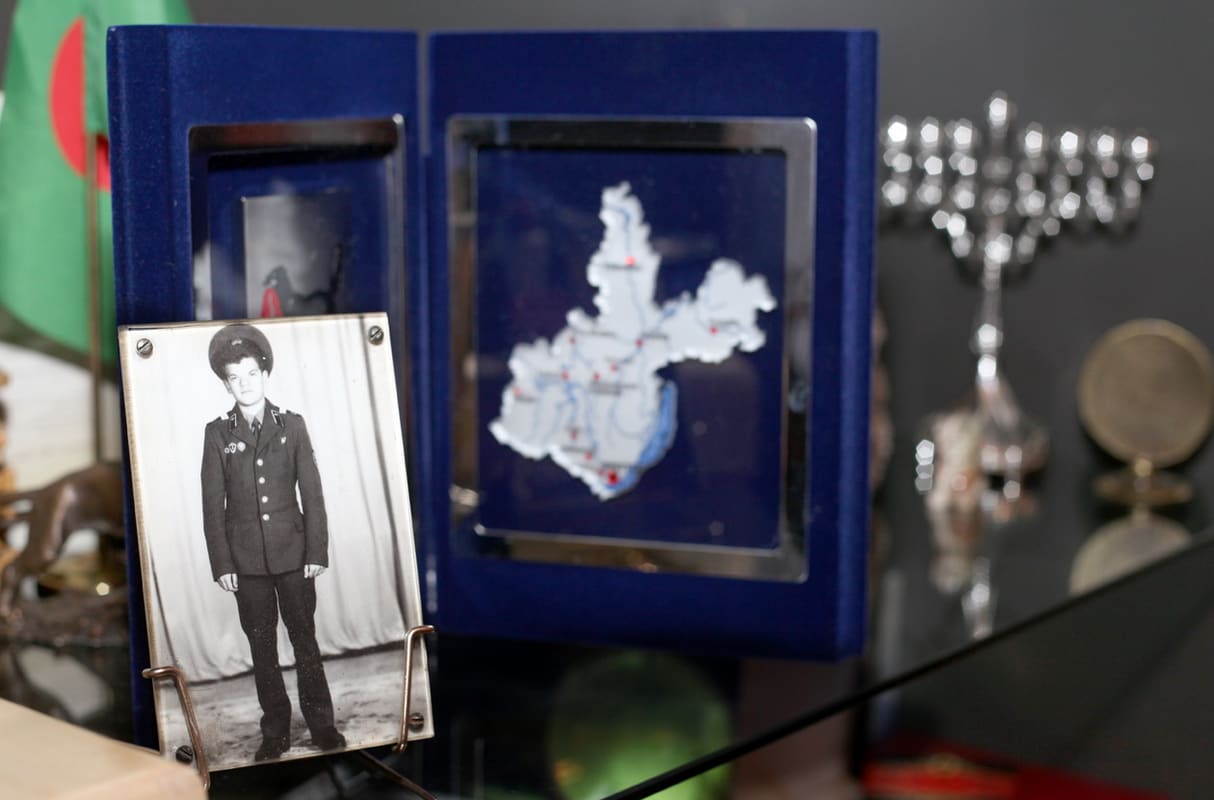 Из личного купленного и привезённого – солдат Швейк, один из любимых литературных персонажей, память о Праге. Конечно, на столе стоят фотографии семьи – родителей, жены и старшей дочери Жени. Фото маленького Кирюши – заставка на «рабочем столе» компьютера.