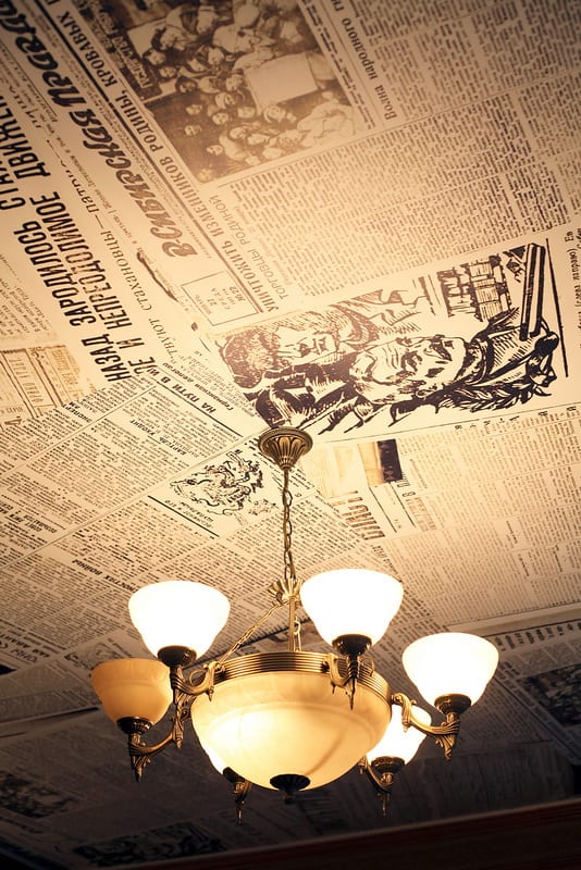 – Многое здесь определялось самой геометрией: получилось, что в кабинете две стеклянные стены. Так что специфический вид кабинета в определённой степени продиктован архитектурой. Хотя я не очень люблю открытые пространства, но этот вариант получился симпатичным. Если честно, я обожаю двери закрывать, а моя жена – ровно наоборот. Так мы и живём – с открытыми, естественно, дверями. Но на работе дверь рабочего кабинета обычно прикрыта – это для меня создаёт ощущение уюта. Из дизайнерских изысков всем уже давно известен этот потолок, стилизованный под страницы газет. Его для меня сделали дизайнер Ольга Завражина и наш фоторепортёр Николай Михайлович Бриль. На Сухэ-Батора у меня была комната отдыха. Когда я начал здесь планировать место главного редактора, понял, что в ту комнату я заходил раз в три месяца. Поэтому, как вы видите, никакой комнаты отдыха здесь уже нет.