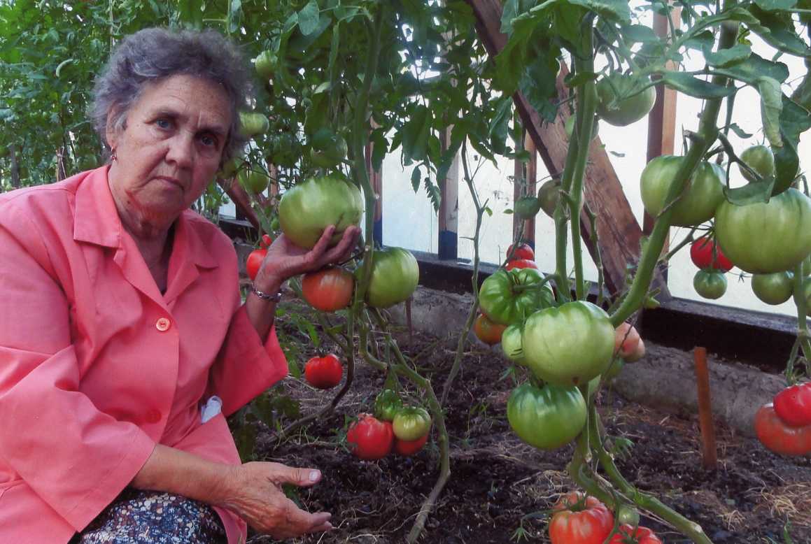 Как-то на выставке в Сибэкспоцентре в клубе имени Томсона среди всех крупных томатов выделялся плод-гигант весом 980 г. Это был сорт Княгиня Софья. Хозяйка разрешила взять семена, и мы их разделили в клубе, но никто не смог вырастить помидор такого размера. Обычно для выставки в нижней кисти оставляют всего один плод, хорошо подкармливают растение. В итоге оно все свои соки и питание отдаёт этому плоду. Но всё равно этот сорт мне понравился за скороплодность и урожайность. Красные плоскоокруглые плоды стали наливаться и краснеть одними из первых среди крупноплодных сортов. В нижних кистях поспело по 3-4 плода массой около 200 г. И хотя высота кустов была небольшая, 1,2–1,4 м, кистей было много, урожайность отличная. Сорт идеально подходит для невысоких плёночных парников.
