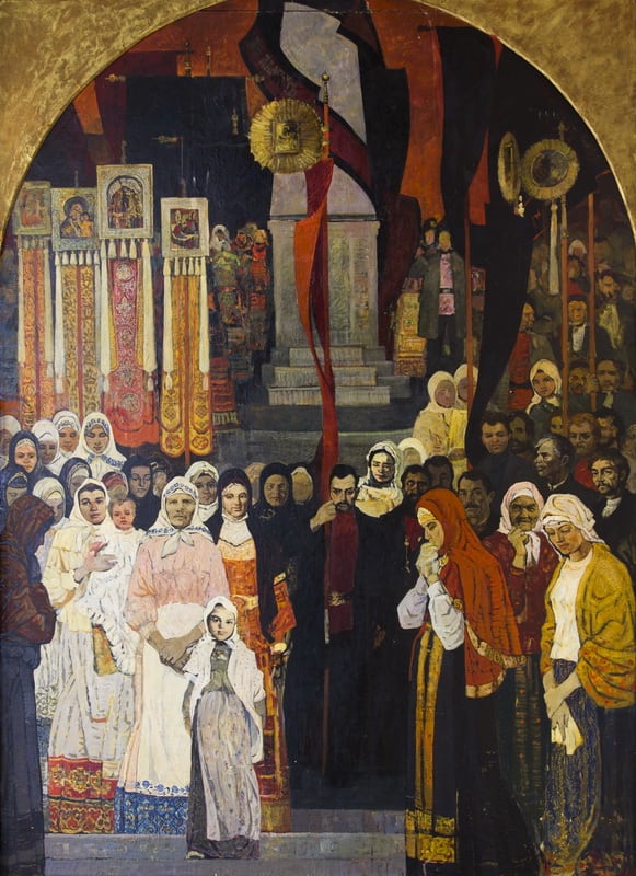 «Реквием» – это не только скорбь, но и память. Немыми свидетелями поминовения стали родные художника – его жена, дочь Вера, отец, родственники. Василий Иннокентьевич вписал их образы в свою картину, а в правой части полотна печально и строго на нас смотрит сам художник.