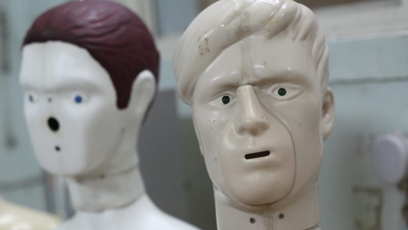 – Перелом мечевидного отростка, – вздыхает Евгений и сочувственно гладит по пластиковой голове тренажёр «Витим-22-У» – мужской манекен без ног в натуральную величину.