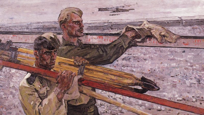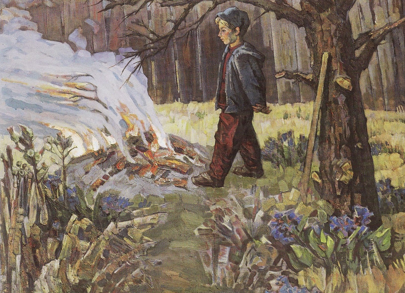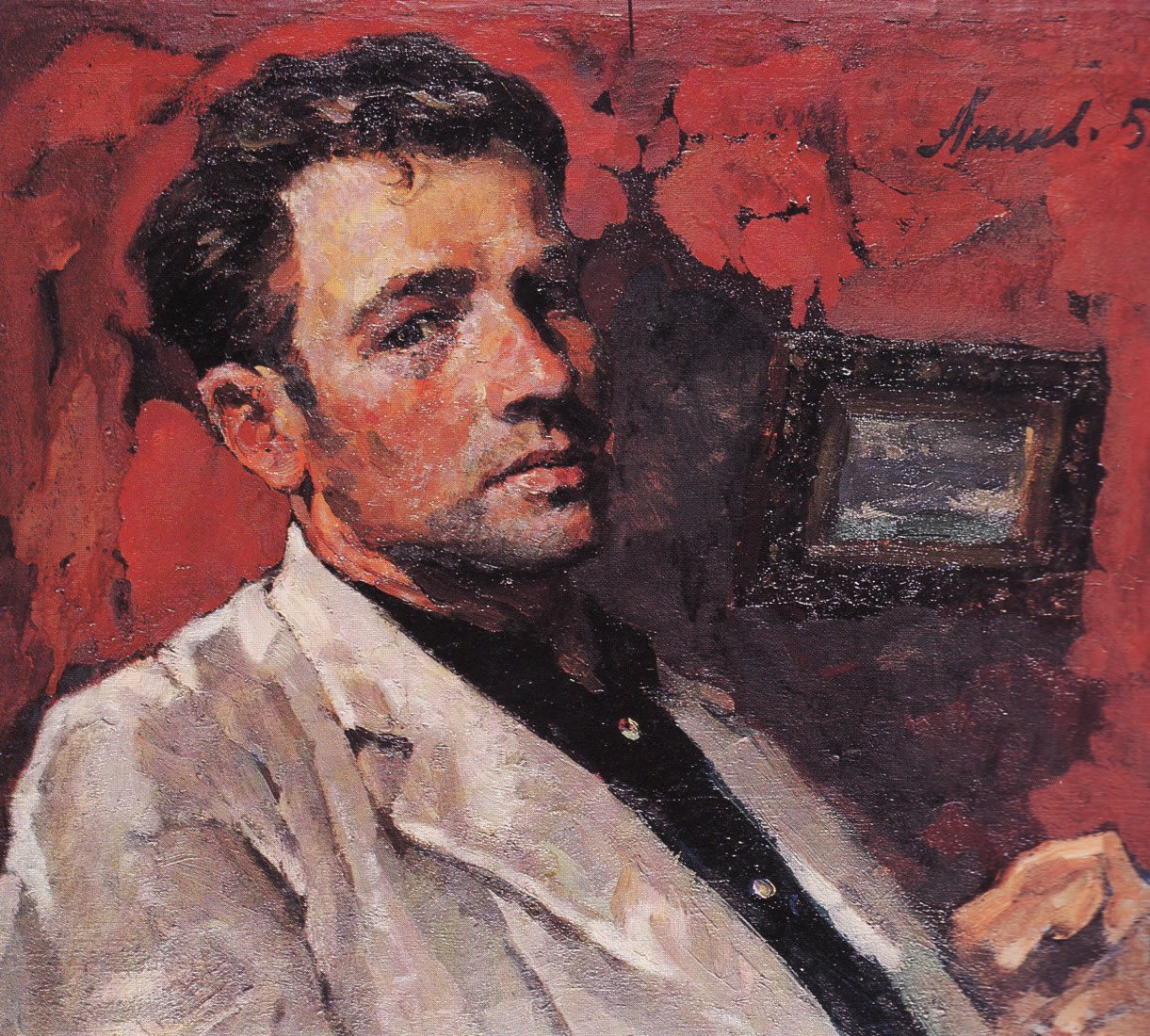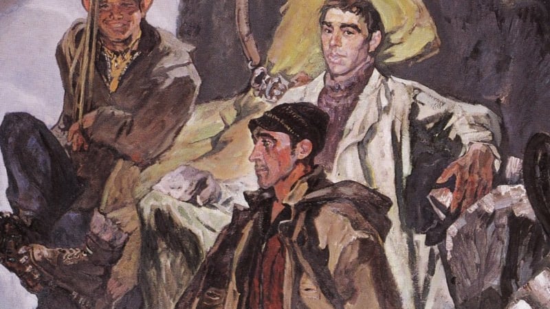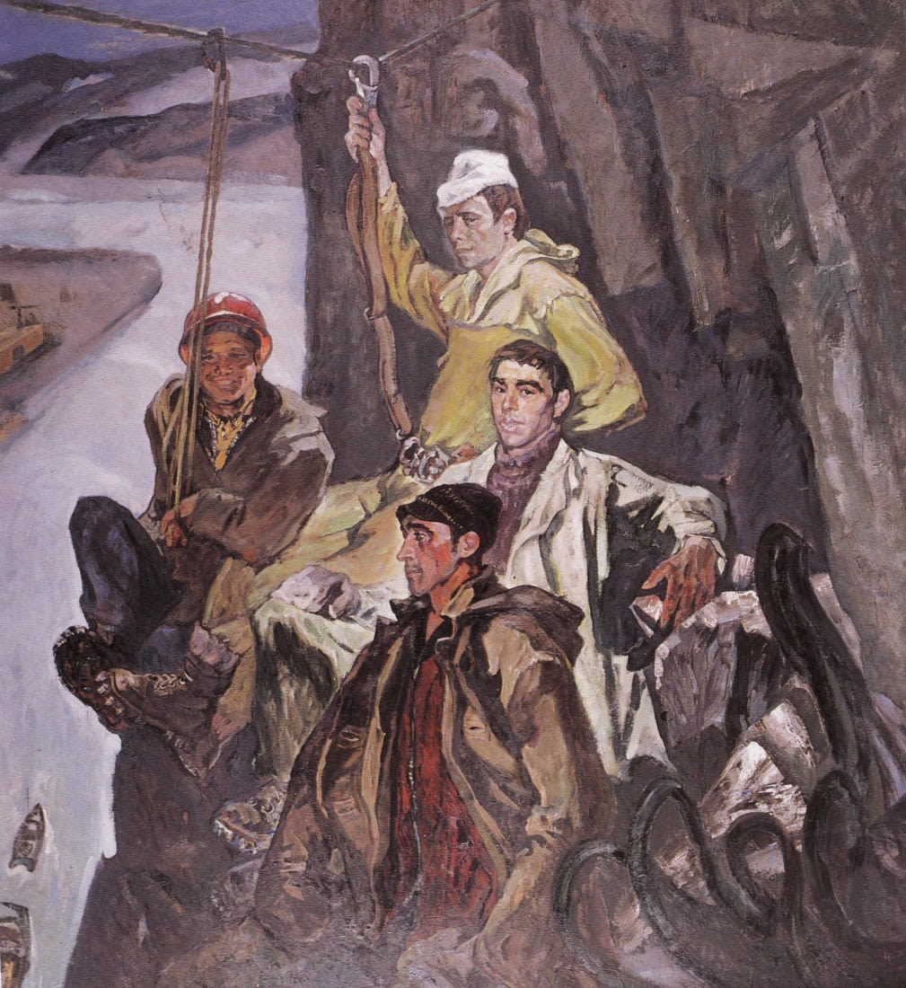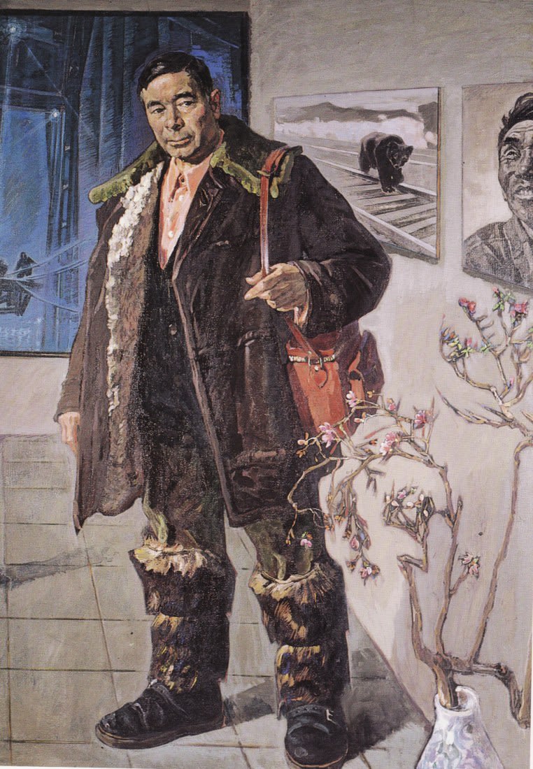 Глаз не отвести, надо отвечать. Он смотрит, не мигая, тебе в душу и ждёт. Суровый парень, а в руке со сбитыми, израненными пальцами бережно держит ломкую, хрупкую веточку расцветшего багульника с нежными, фиолетовыми лепестками. За его спиной, на стене, – видавшая виды гитара, на полке – зачитанные книги с истрёпанными корешками. И хочется ответить ему. Искренне, убеждённо: «Да, с тобой бы смог. Ты надёжен. С такими, как ты, всё нипочём. С тобой не страшно». Хороший портрет хорошего человека».