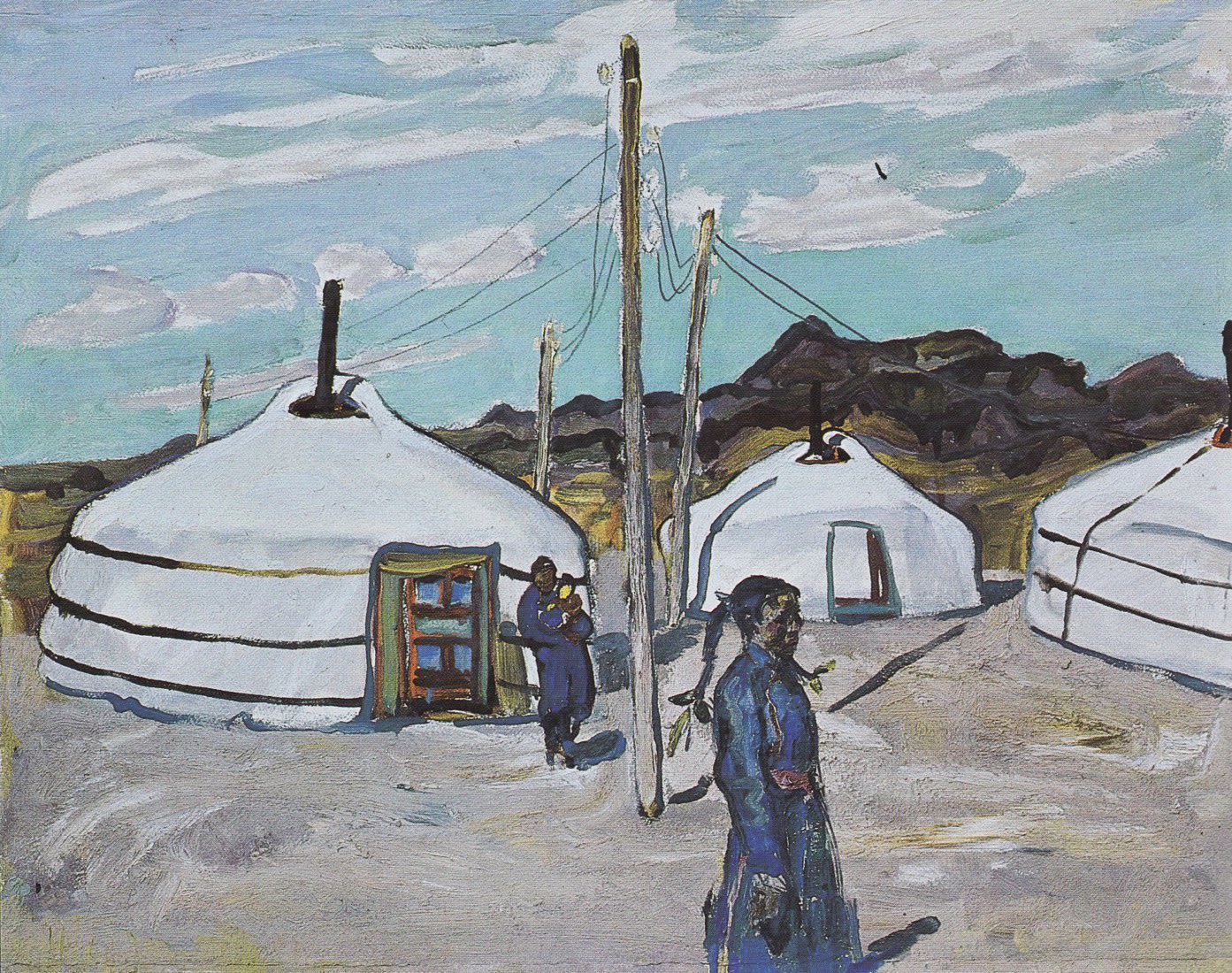 Среди композиций, тяготеющих к картине, сильное впечатление производит диптих «Родители». В этом произведении глубоко выражена идея памяти, звучащая во многих работах художника, идея верности родному очагу как жизненной опоре, истоку творчества. Лёгкий фон заснеженного пространства словно приближает к нам фигуру матери, стоящей у стареньких ворот. Мы надолго запомним её взгляд, лицо, весь облик. Открытое навстречу нам материнское чувство осеняет добротой, сердечностью, заставляет каждого вспомнить о близких, с которыми и расставаясь мы не расстаёмся.