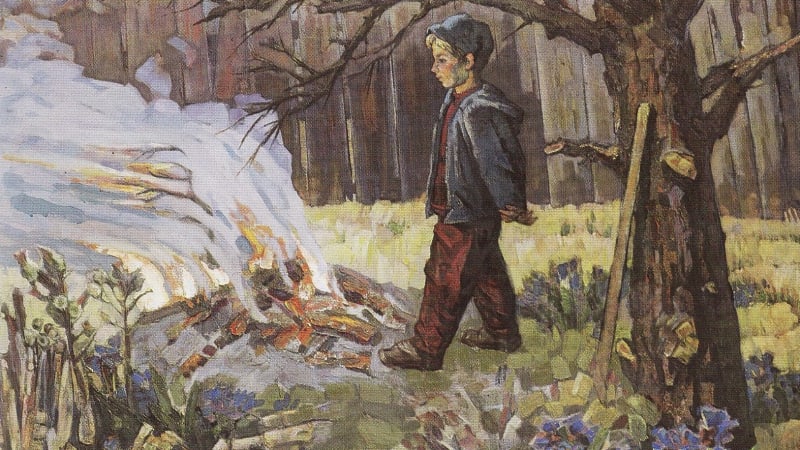 Этим святым чувством проникнут и портрет писателя Валентина Распутина. Душевная интонация произведения, выраженная в психологическом сопоставлении напряжённого внутреннего мира писателя и безмятежности его дочери, невольно ассоциируется с главным качеством книг писателя – их пронзительной человечностью.