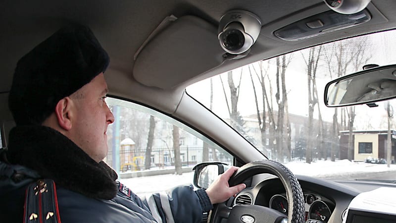 стоящую на «торпеде» справа от водителя экипажа ДПС