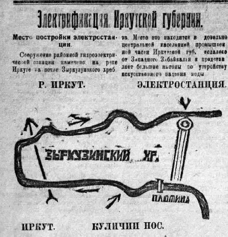 Газета «Власть Труда» в 1924 году в нескольких номерах разместила подробный проект инженера В. Шмидта о постройке гидростанции на реке Иркут. Ради этого на газетных полосах выделили даже место под несколько картинок-схем будущей станции. Гидростанцию предлагалось поставить на петле Зыркузунского хребта по Иркуту. «Место это находится в довольно центральной населённой промышленной части Иркутской губ., недалеко от Западного Забайкалья, и представляет большие выгоды по устройству искусственного падения воды», – писал