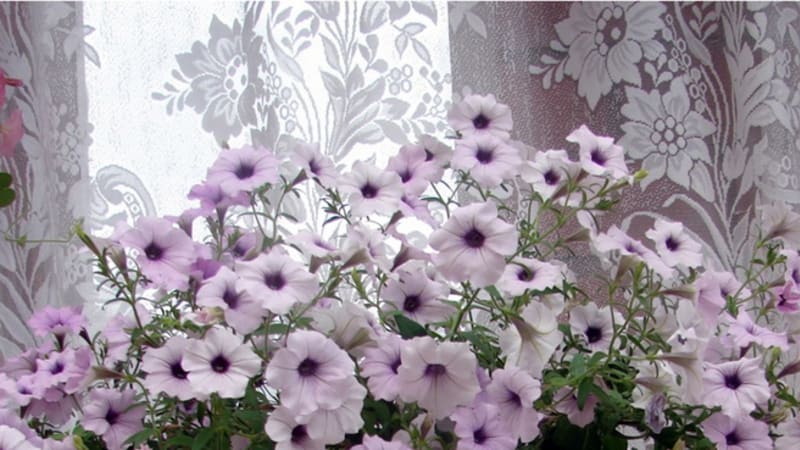Чтобы уже с мая любоваться огромной роскошной шапкой цветов, я размножаю часть петуний не посевом семян, а черенкованием. Несколько самых красивых, любимых сортов петуний черенкую летом. Растение черенкуется легко, а главное, у меня остаётся выбранный сорт надолго. На зиму нежные, чуть подросшие петунии я заношу в комнату, обычно подвешиваю в кашпо у солнечного окна. Поливаю редко. С конца января растение начинает интенсивно расти. В феврале молодые приросты, достигшие 10–15 см, срезаю и черенкую.