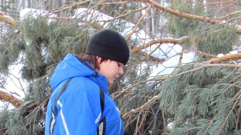 Встреча не была случайной, но всё равно удивила. Среди зимы в заснеженном лесу недалеко от Куйтуна – девушка с ведром в руке. Будто она по грибы или по ягоды сюда пришла. Картинка не то чтобы совсем уж нелепая, но не из привычного ряда. Заранее знал, что увижу нечто похожее, а всё равно опешил от неожиданности.