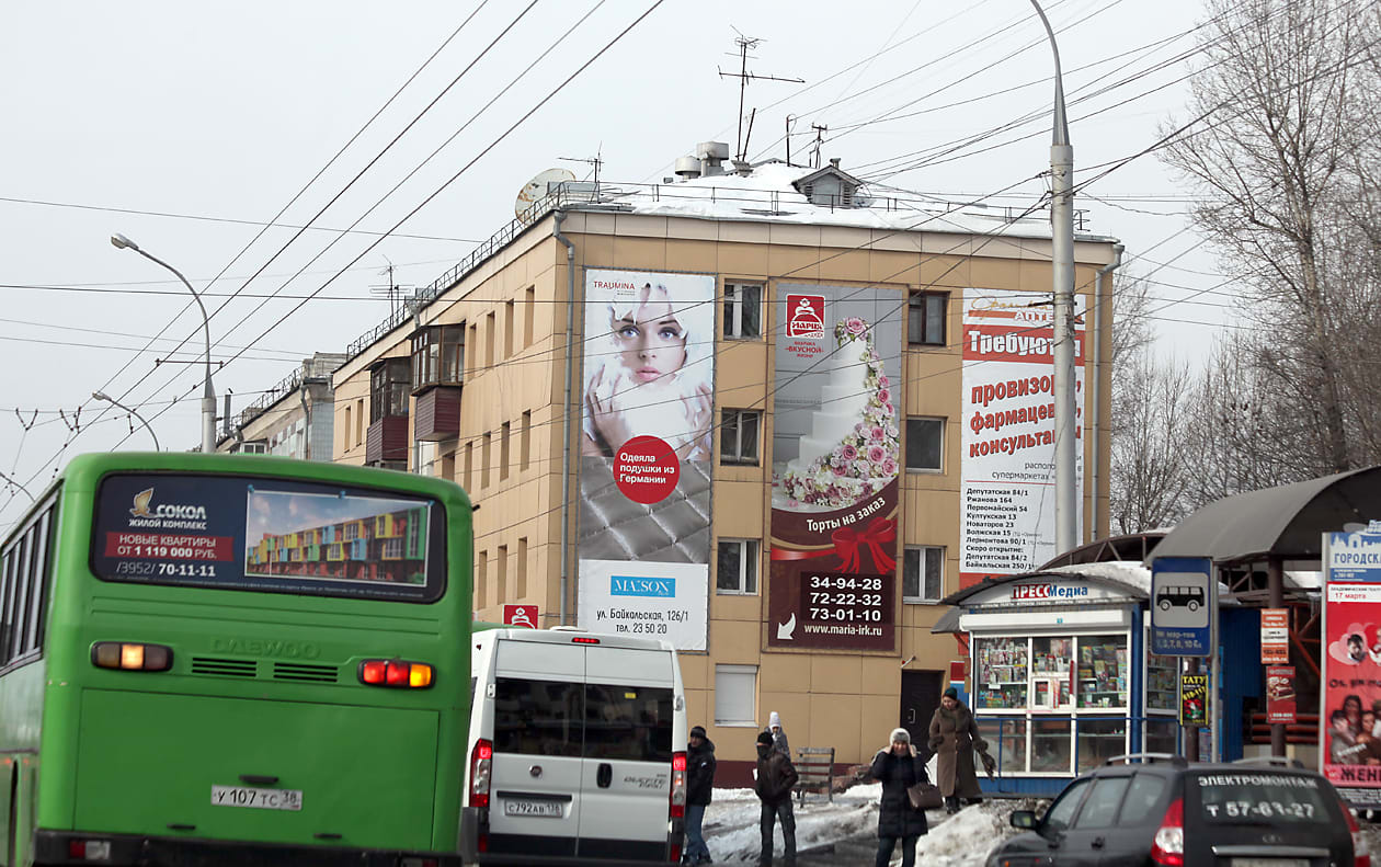 Самый распространённый способ зарабатывания на общедомовом имуществе – размещение рекламных конструкций на фасадах и оборудования интернет-провайдеров на крыше. В Иркутске существует давно отработанная схема. При этом раньше управляющие компании выходили с коммерческими предложениями к собственникам жилья, теперь же сами жильцы заинтересовались вопросом. Яркий пример того, как правильно распорядиться общим имуществом, – дома на улице Байкальской в Иркутске. Они буквально увешаны рекламными баннерами. Обратите внимание: фасады здесь почти все ухожены – собственники направляют средства на эксплуатацию и ремонт домов.