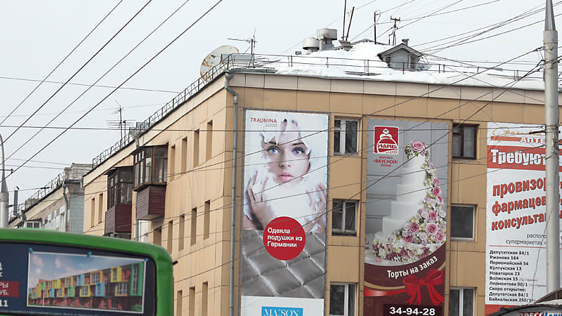 На сайтах рекламных агентств города имеются адреса домов, готовых к размещению баннеров. Во всех районах города есть многоэтажки, жильцы которых решили зарабатывать на стенах. Конечно, расценки зависят от места расположения дома. Например, разместить рекламу на девятиэтажке на Партизанской сроком на три месяца стоит 100 тысяч рублей. На доме по той же улице, но с меньшим обзором для прохожих – 40 тысяч рублей. Пятиэтажки в Ленинском районе готовы разместить рекламу за 10–18 тысяч рублей. Самую высокую цену просит девятиэтажка в Первомайском за баннер площадью 300 квадратов. Собственники готовы потерпеть три месяца такую большую рекламу на фасаде своего дома за 130 тысяч рублей.