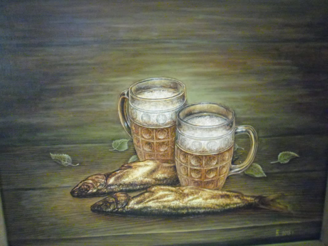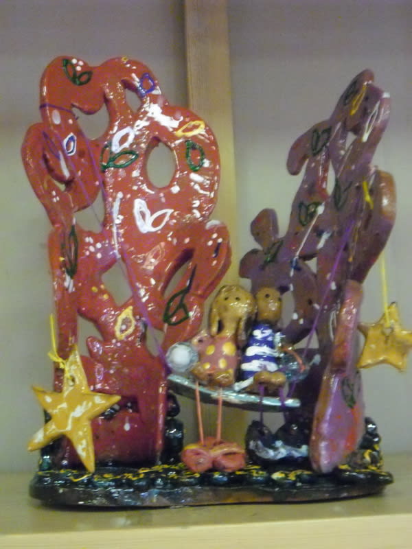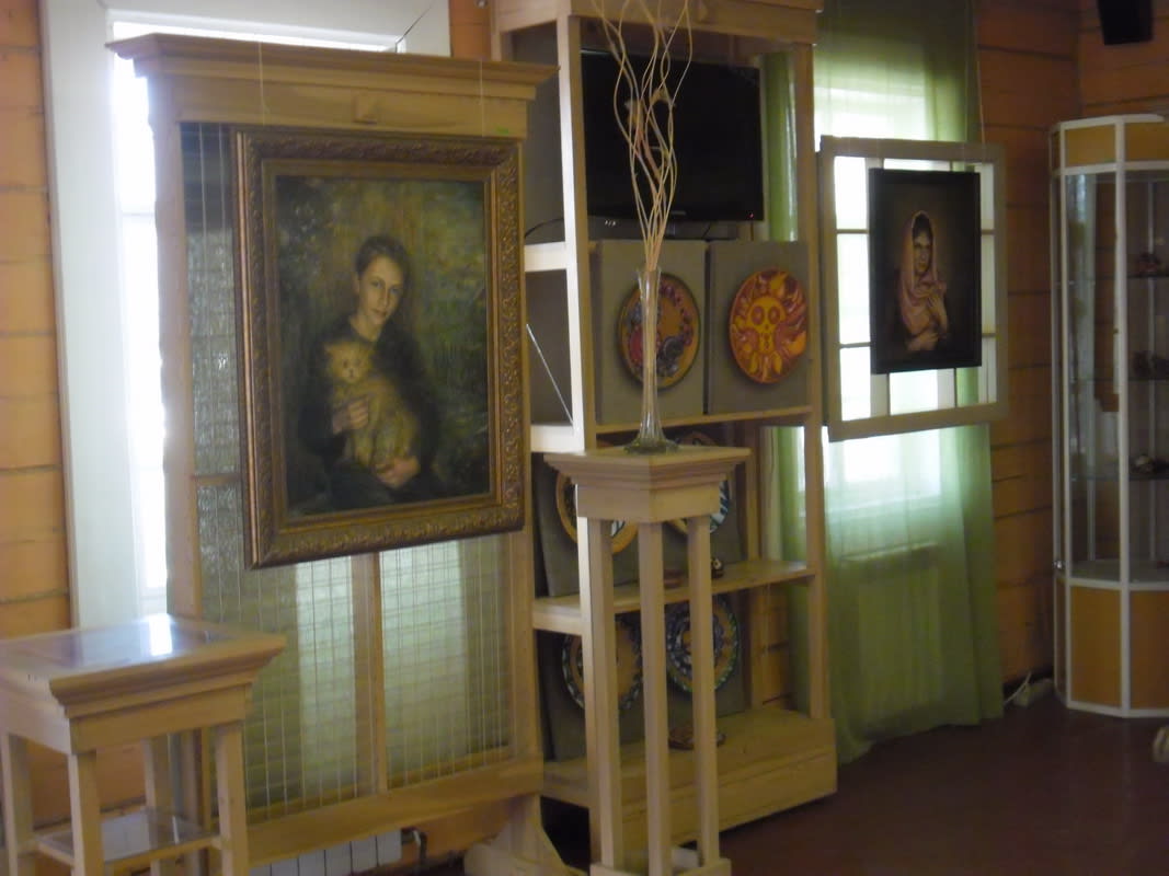 На выставке, помимо живописи, представлены композиции из керамики и роспись по дереву. Автор работ – Наталья Мишурина и её ученики. Как рассказала сама художница, она с большим интересом совмещает и роспись по дереву, и изготовление фантазийных предметов из керамики.