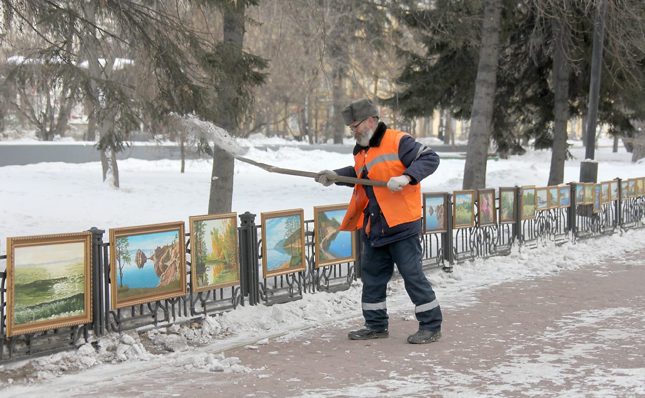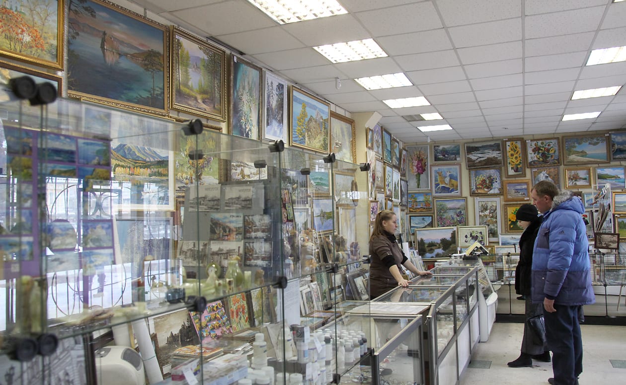 Мы стоим на пятачке у художественного магазина в сером доме на пересечении Ленина и Карла Маркса. Среди профессиональных художников он считается позорным местом. Иркутянам он больше известен развалом, где уличные художники продают картины.