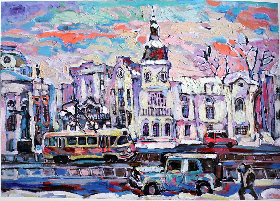 – Мастер не обязан документировать реальность – это задача фотографа. Художник работает образно и иногда к знакомым ландшафтам может своё добавить, чтобы улучшить их. Так, образ деревянного Иркутска может быть собирательным… Каменный, кстати, тоже. Вот улица Карла Маркса – по сути, музей под открытым небом. Архитектура здесь великолепная, и менять ничего не нужно – образ и атмосфера уже существуют.