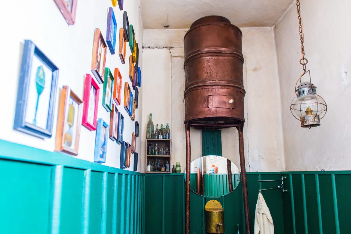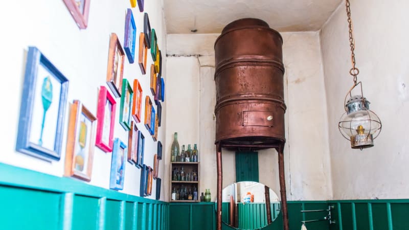 Есть, правда, и то, что осталось неизменным даже после масштабного  благоустройства и приведения дома в порядок. Например, узенькая лестница, ведущая на второй этаж (к офисам и массажному кабинету и будущему выставочному пространству) подпадает под охранную грамоту и переделке не подлежит. Она формирует уверенность: люди раньше были покомпактнее. Интерьеры в каждой комнате «Дома А» невероятны и не похожи друг на друга. В туалете – стилизованный под старину умывальник и нашествие пупсов, в комнате, где мы застаём Гузель, стоит фантастическая фисгармония, отреставрированная обитателями дома. Музейный принцип «руками не трогай» здесь, кажется, не властвует. Умеешь? Садись и играй.