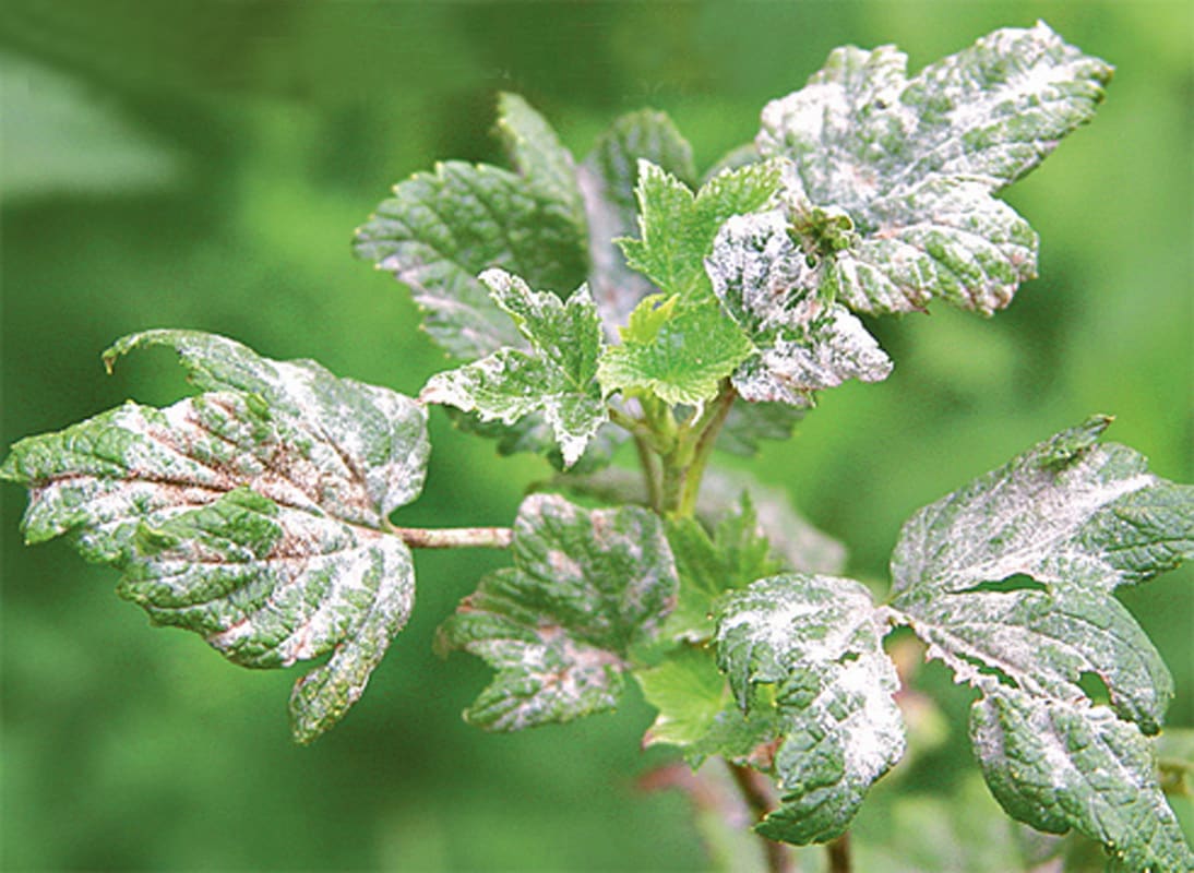 Мучнистая роса – самая распространённая и вредоносная болезнь смородины и крыжовника. Она сильно угнетает кусты и снижает урожайность, а иногда при сильном поражении ягода полностью теряет товарный вид и становится непригодной к употреблению. Болезнь начинает проявляться в первой половине лета и поражает молодые листья. На их нижней стороне появляется белый налёт, они как бы обсыпаны мукой. Это споры болезнетворного гриба.
