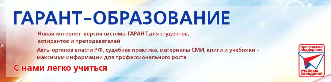 Интернет-версия системы ГАРАНТ для студентов, аспирантов и преподавателей «ГАРАНТ-Образование» доступна круглосуточно, семь дней в неделю, 365 дней в году.