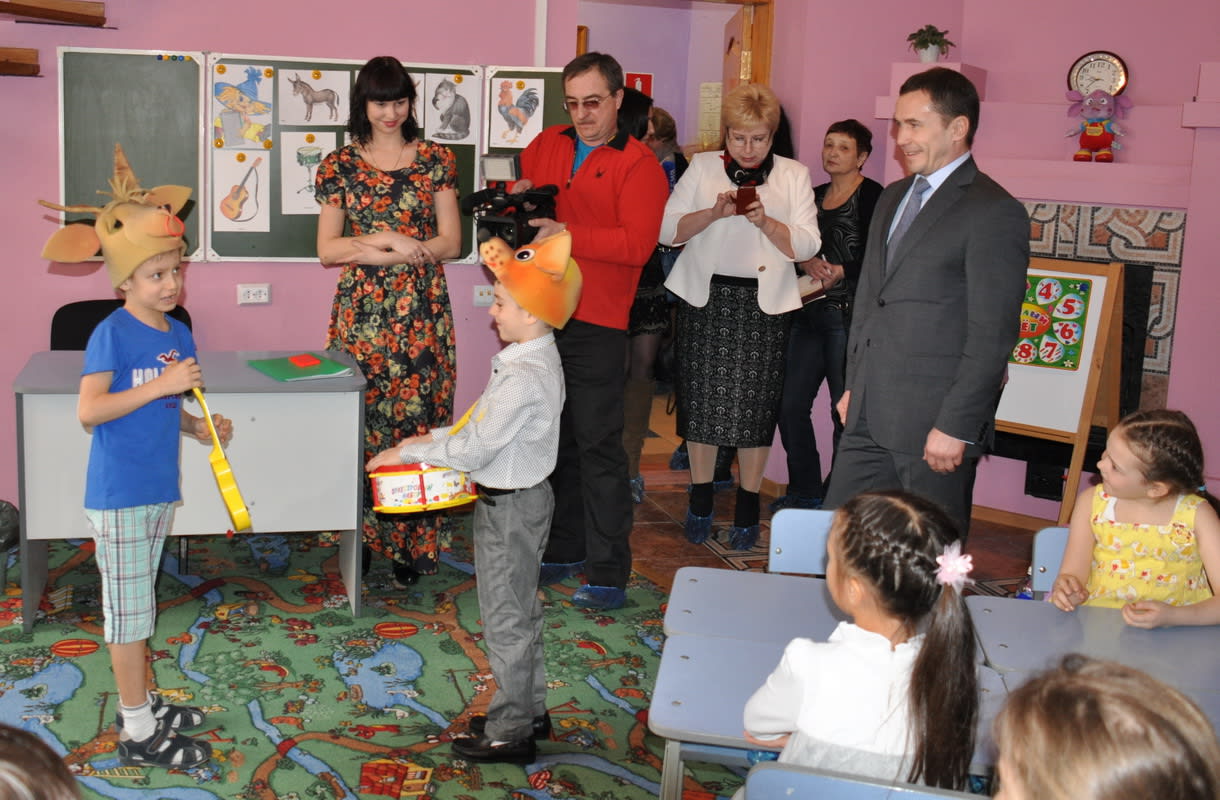 Образовательные учреждения оказались очень разными – по структуре, материальным возможностям и, как следствие, стоимости услуг. Посещение малышом детского сада «Маруся» в микрорайоне Солнечный обходится мамам и папам особенно дорого. 15 тысяч рублей нужно выложить из кармана, даже если ребёнок временно не посещает садик по болезни или другой причине. Плюс за каждый день пребывания сына или дочки в дошкольном учреждении приходится отдавать по 600 рублей. Если малыш ходит в садик без «прогулов», в месяц набегает 27 тысяч. Однако, как выяснилось, за три года работы этого частного учреждения ещё никто из его воспитанников в муниципальный детсад не сбежал. «Маруся» ребятишкам нравится, это заметно сразу. Комиссии тоже многое понравилось: и фотогалерея с мордашками воспитанников в вестибюле, и разноцветная складная мебель, и кафе, декорированное под сказочный замок. А особенно сами дети. У старшей группы шло занятие, ребята учились складывать из слогов разные слова. В классной комнате побывал и Дмитрий Бердников. Дети охотно продемонстрировали гостю свою грамотность и умение работать с интерактивным оборудованием. А он подарил дошколятам большого плюшевого зайца со словами: «Пусть Степашка посмотрит, как вы учитесь».