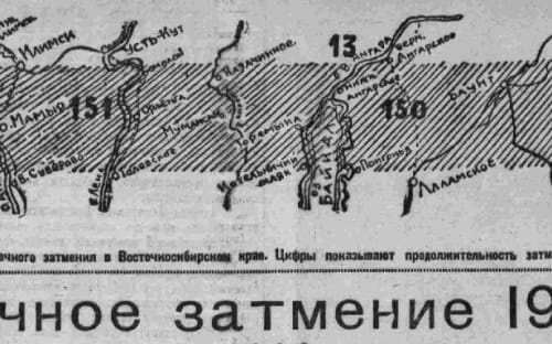 Это затмение было редким, поскольку его было видно практически на всей территории СССР, и пересекало Восточно-Сибирский край. Потом многие годы жители нашего края могли наблюдать лишь частичные затмения Солнца. Но и эти события отмечались в газетах. Например, 17 февраля 1961 года в «СМ» вышла заметка о затмении 15 февраля, которое наблюдалось полным в европейской части СССР и на севере страны. Сотрудник службы Солнца Иркутской астрономической обсерватории Л.Н. Холкина сообщила, что первый снимок был сделан в 16 часов 39 минут, тень Луны накрыла шесть десятых Солнца. Всего было сделано восемь снимков, «представляющих определённый научный интерес для дальнейших изучений Солнечной планеты» (написание сохранено. – Авт.).