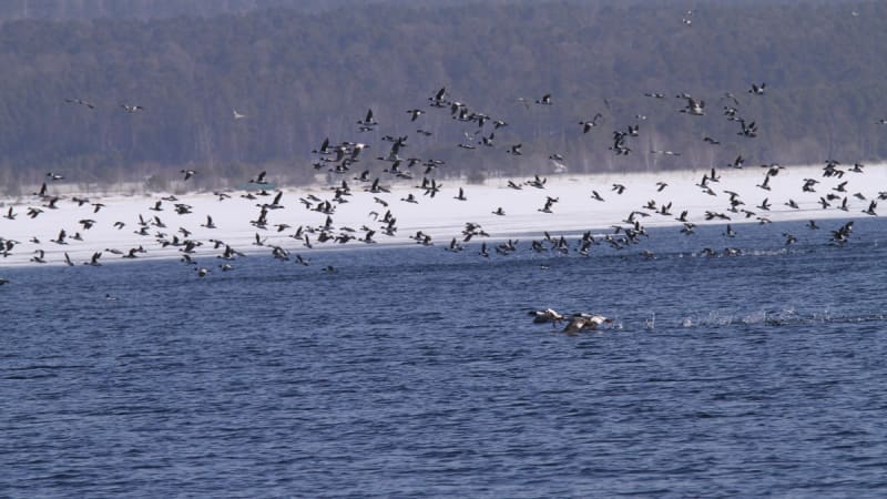Заводится мотор, и катер-амфибия «Хивус» на своей мягкой подушке мчится по водной глади залива в Листвянке. Его небольшой экипаж с фотоаппаратами и биноклями уже наготове. Со стороны компанию можно принять за группу туристов, впервые приехавших на Байкал. Но отнюдь не праздное любопытство привело их сюда. Мини-экспедиция, в составе которой орнитологи, а также «Сибирский энергетик», поехала на поиски уток, которые здесь остаются зимовать.